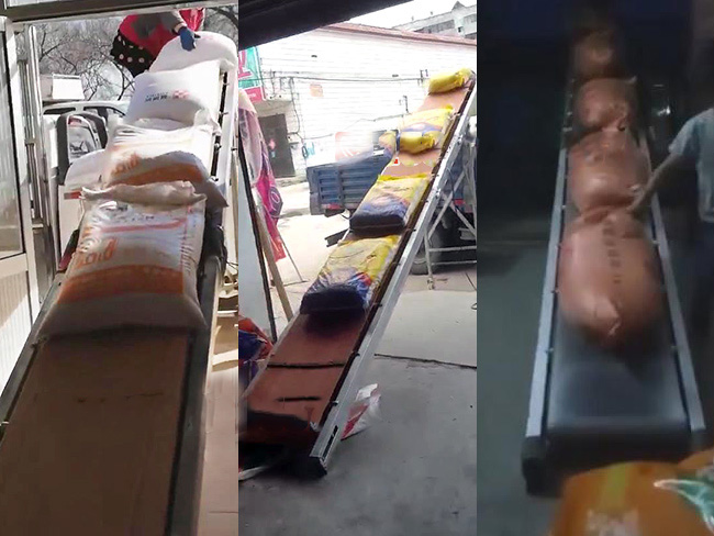 折疊皮帶輸送機(jī)多用于袋裝物料的輸送、裝車、卸車、倒倉、碼垛等多種用途,室內(nèi)室外均可使用。折疊皮帶輸送機(jī)直接應(yīng)用于農(nóng)機(jī)具,農(nóng)用三輪車和五輪車還有拖拉機(jī)收購糧食的輸送裝上車,折疊后長度是原來的一半,掛在車上裝卸方便。